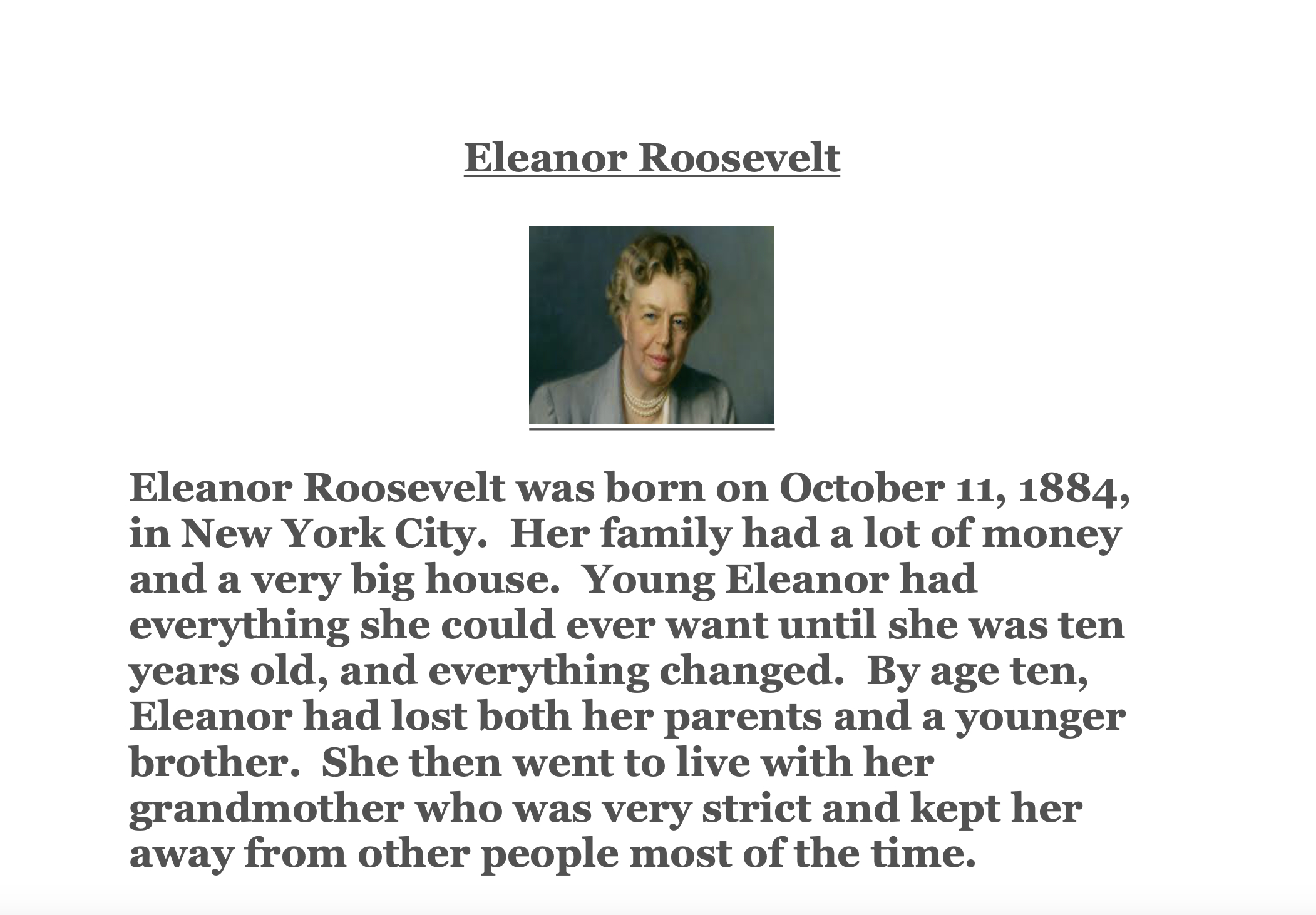 Eleanor Roosevelt Fact Sheet